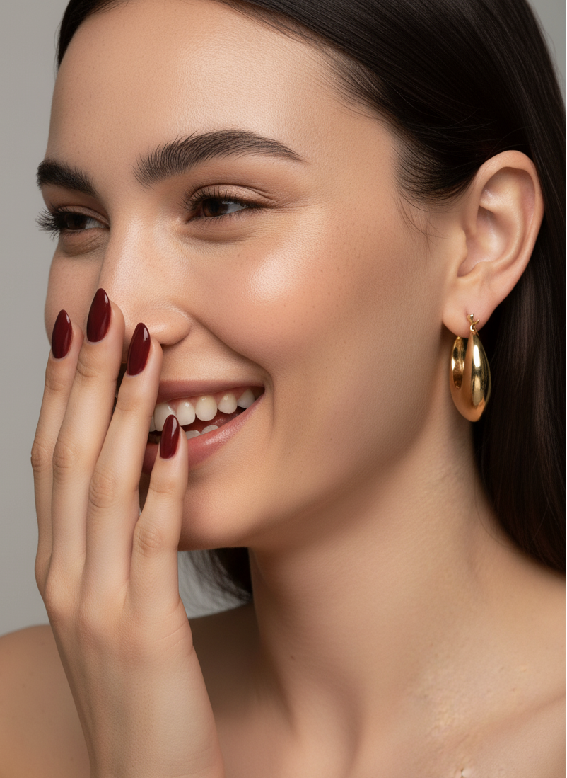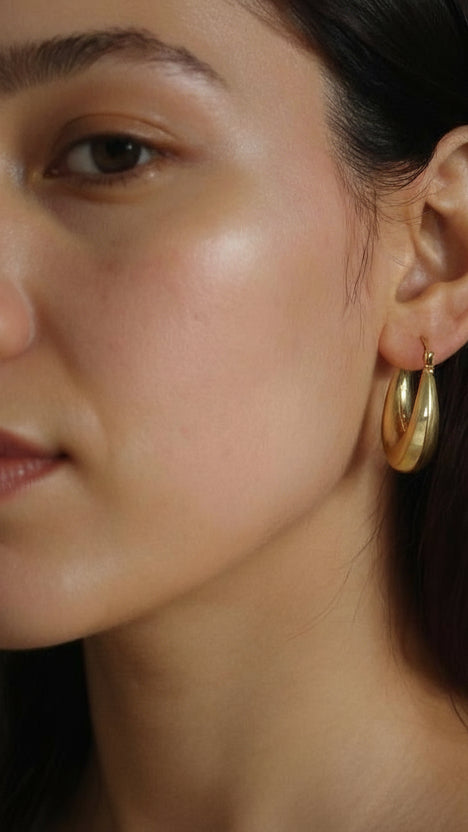 Elevate your style with these chunky gold hoop earrings, designed with a bold retro-inspired curve. Lightweight yet eye-catching, perfect for day-to-night wear.